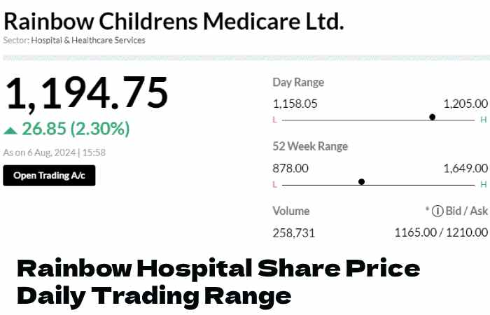 • As of August 6, 2024, the share price of Rainbow Children’s Medicare Ltd. is ₹1,197.10.